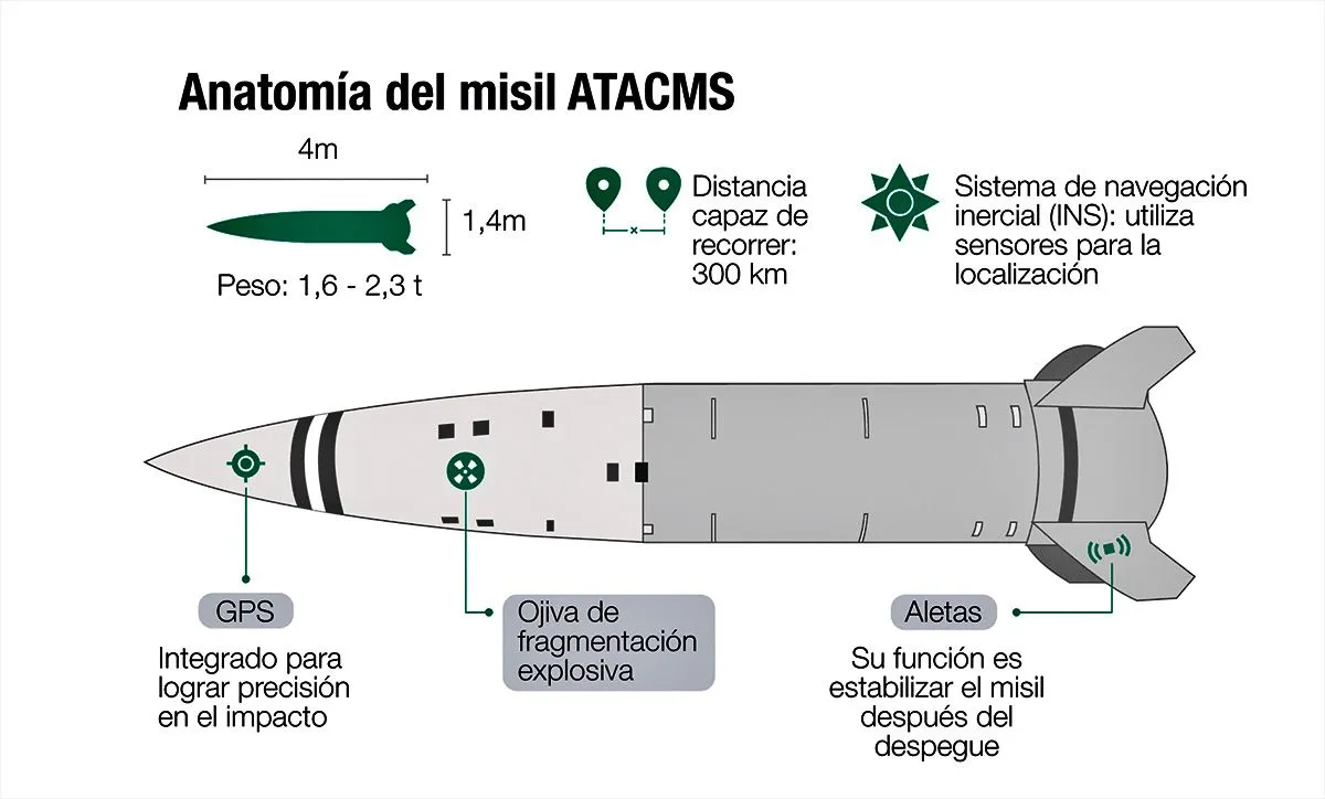 El MGM-140 Atacms es un misil balístico que llega a tener un alcance de hasta 300 kilómetros.