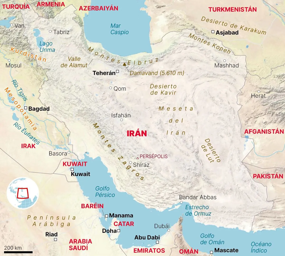 Esa es la ruta que utilizó Sadam Hussein para invadir Irán en 1980, aunque sus tropas sólo avanzaron unas decenas de kilómetros en territorio iraní y nunca llegaron a ocupar más del 2% del país. Menos verosímil es que pueda intentarlo desde el este. Ni desde Afganistán, donde gobiernan los talibanes, ni desde Pakistán, que ha condenado el asesinato del líder supremo Alí Jameneí y observa con recelos el acercamiento de Washington a la India.