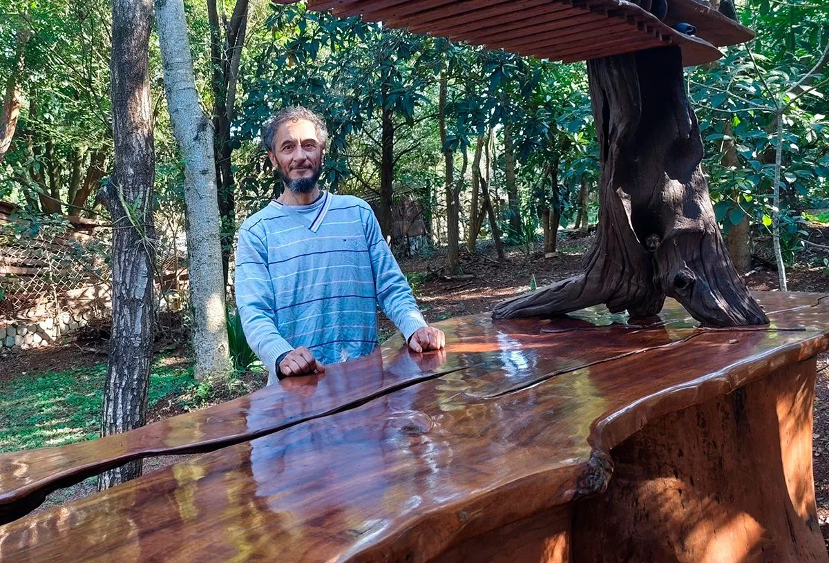 Además de hablar de sus creaciones en madera que obtiene en su propio terreno, brinda su mirada sobre el trayecto personal y el valor de animarse. “Todos estamos procurando cómo servir al sistema y no procurando hacer lo que nos gusta”