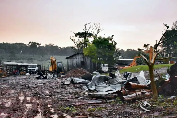 En San Pedro, dos aserraderos y un secadero de yerba resultaron con pérdidas totales. El viento destechó casas y partió árboles a la mitad.