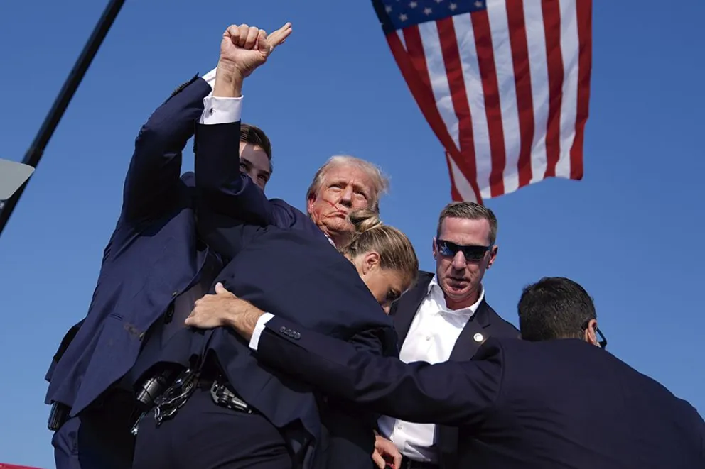 PAIS Y EL MUNDO Trump recibió un balazo en la oreja en un acto de campaña admin 15/07/2024 1 min de lectura El candidato republicano sufrió un intento de magnicidio en Pensilvania. Source link Deja una respuesta Cancelar la respuestaTu dirección de correo electrónico no será publicada. Los campos obligatorios están marcados con *Comentario * Nombre * Correo electrónico * Web Guarda mi nombre, correo electrónico y web en este navegador para la próxima vez que comente. Historias relacionadas Trump: “Nicolás Maduro tiene los días contados” 3 min de lectura PAIS Y EL MUNDO Trump: “Nicolás Maduro tiene los días contados” 12/12/2025 El gobierno empuja la reforma laboral sacando ingresos a los sindicatos 3 min de lectura PAIS Y EL MUNDO El gobierno empuja la reforma laboral sacando ingresos a los sindicatos 11/12/2025 Estados Unidos exige que desde 2027 Europa se haga cargo de la defensa convencional de la Otan en 2027 6 min de lectura PAIS Y EL MUNDO Estados Unidos exige que desde 2027 Europa se haga cargo de la defensa convencional de la Otan en 2027 10/12/2025