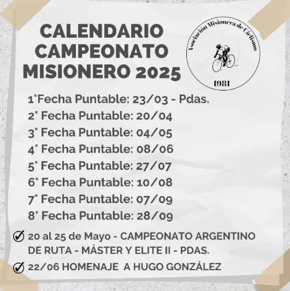 En el calendario: La Asociación Misonera de Ciclismo (AMC) confirmó que el Argentino de Ruta Master y Elite II (20-25 de mayo en Posadas) también llevará el nombre del corredor, consolidando su legado.