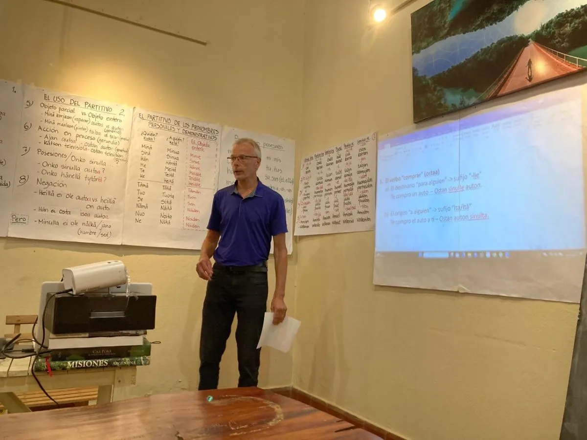 En Oberá organizan las clases con láminas grandes y carteles que cuelgan y despegan en cada encuentro. Los alumnos fotografían ese material, reciben fotocopias y arman dos carpetas: una con los impresos y otra con apuntes, porque el ritmo hace que se pase rápido de un tema a otro. Entre los asistentes hay universitarios, trabajadores y una alumna sin raíces finlandesas cuya casa perteneció originalmente a un finlandés; además, dos estudiantes viajan desde Ruiz de Montoya para sumarse.